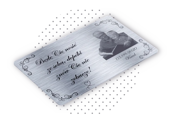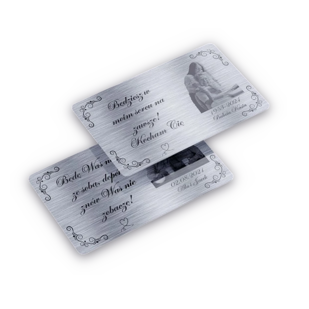Nasza karta pamięci to niepowtarzalny symbol miłości i pamięci. Stworzona z dbałością o każdy detal, łączy elegancki design z trwałością najwyższej jakości materiałów.